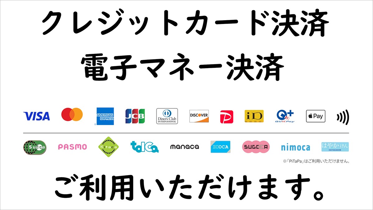 ※端末機の不具合などによりキャッシュレス決済がご利用いただけない場合がございます。予めご了承ください