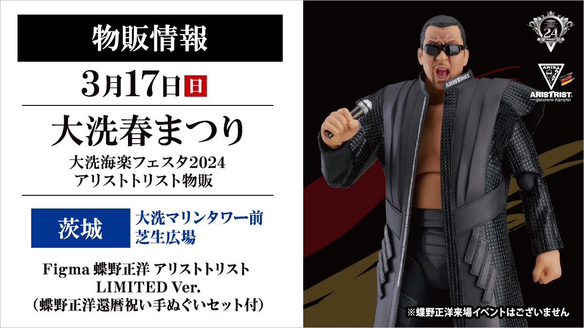 物販では、「Figma 蝶野正洋 アリストトリスト LIMITED Ver.(蝶野正洋還暦祝い手ぬぐいセット)」「ATモードサングラスTYPE1」を販売いたします!