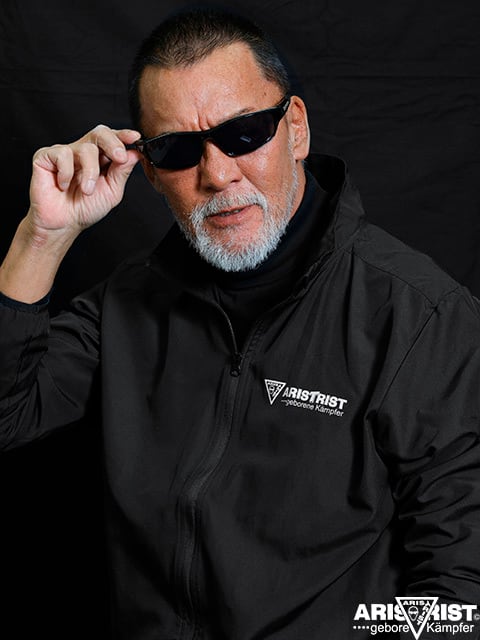 スタンドカラーの襟は顎を守るチンガード仕様。