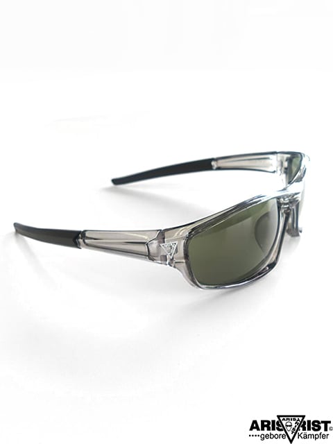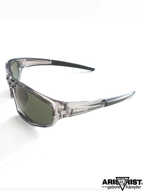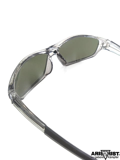 フレームはクリアグレー、レンズは濃いめのグリーンレンズです。