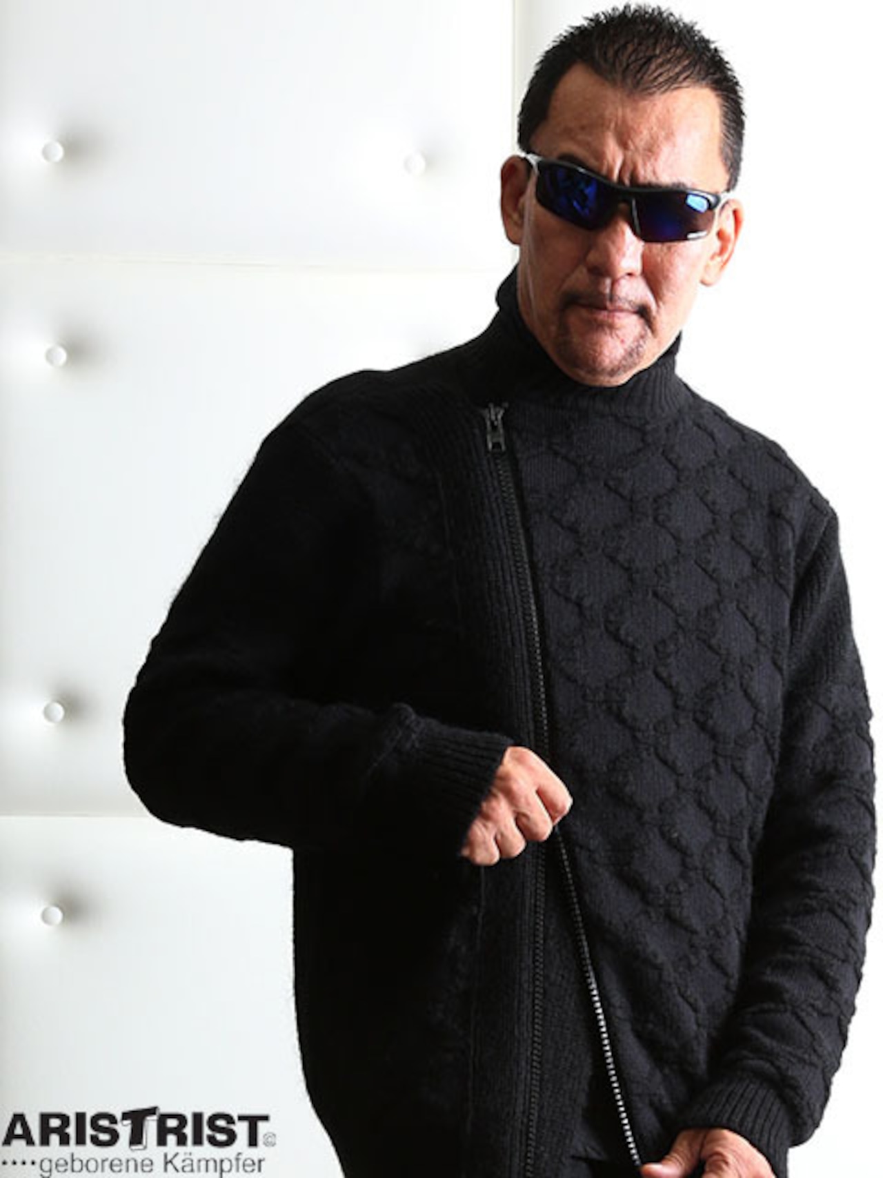 ライダースジャケットをイメージしたデザインを、ニットに落とし込み、他にはない秀逸アイテムが誕生。